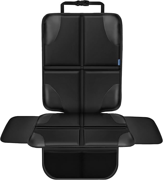 Car Seat Protector, Child Carseat Covers, Protector Car Seat for Baby with Thickest Padded and Non-Slip Waterproof Backing Mesh Pockets for Kids Pets-1 Pack