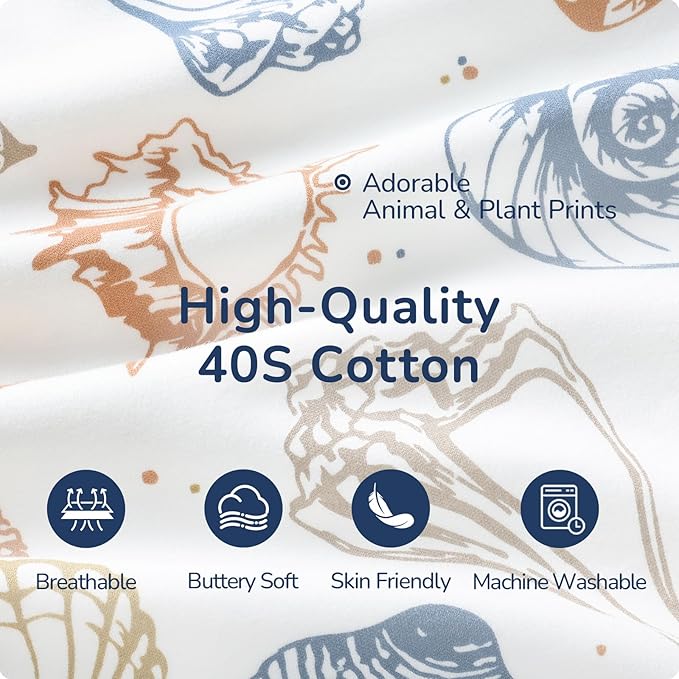 Baby Sleep Sack 18-24 Months, Cotton Detachable Long Sleeve Sleep Sack, 1.0 Tog Toddler Sleeping Sack with Temperature Strips, 2-Way Zipper Wearable Blankets for Newborns, Ocean