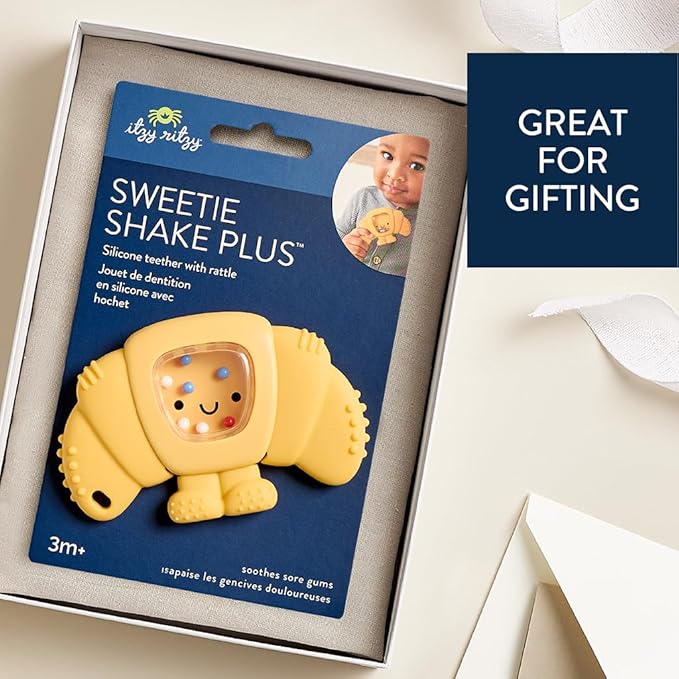 - PERFECT GIFT FOR BABY SHOWERS OR NEW PARENTS: This cute croissant-shaped teething rattle makes a charming gift for baby showers, birthdays, or new parents looking for stylish and functional new born toys and baby teether options.