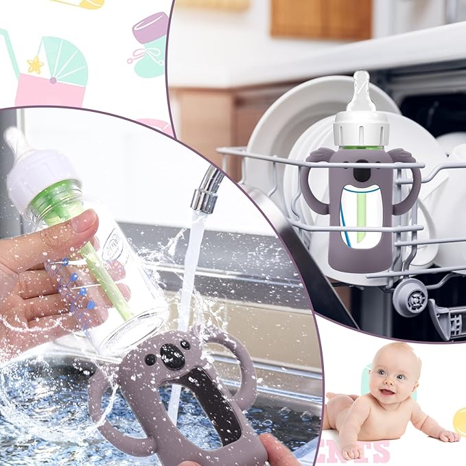 - Food Grade Silicone - Koala Silicone Baby Bottle Sleeves is made of food grade silicone,no chemical additives and BPA free, which is safe to use. The baby bottle sleeves use of anti-stick silicone material and unique shape design, will not stick to the dust,hairiness,etc, which make it safer and more secure for you to use