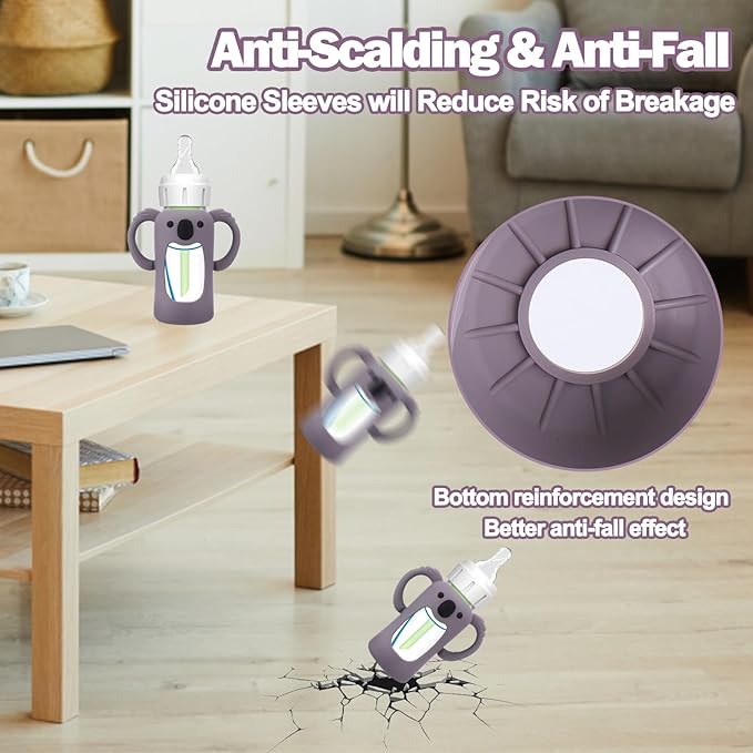 - Unique Designed for Baby Bottles - The silicone sleeves for Dr. Brown's Baby Bottles can against drop down,bumps and scratches. These are a must essential product for using glass baby bottles. They provide a more sturdy protection for glass baby bottle from breaking if dropped, which also unique handle design shape make it easier to grip and hold