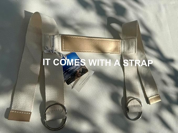 - Includes: 1 white canvas mat, faux leather handle, and webbing strap