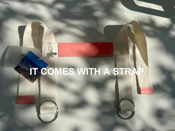 - Includes: 1 white canvas mat, faux leather handle, and webbing strap