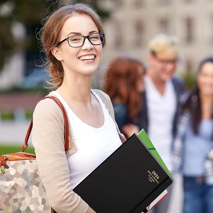 - đź“”USEFUL DESIGNS - The hard cover of planner 2026 protect pages from being damaged | The elastic pen loop is always available for your pen, useful and convenient | You can make a better mark with 2 bookmarks | Inner pocket, it is easy for you to pack business cards stickers | Large size(9" x 11"), enough space to meet your writing needs.