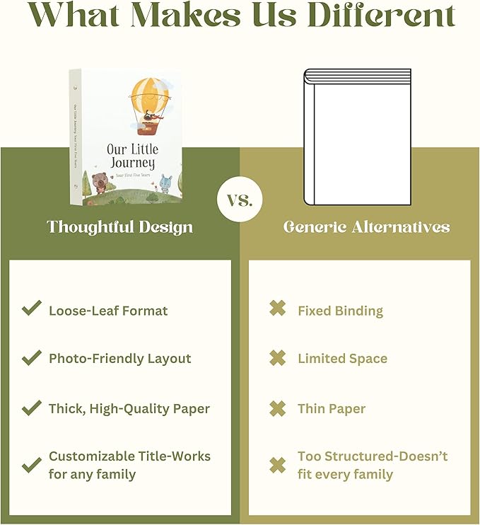 - Open-Ended Pages for Personal Moments: Designed without rigid templates, this baby book keepsake lets you document the moments that truly matter to your family. Whether it’s their first tooth or first taste of ice cream, you choose what to record. No pre-set templates—just space for the memories that truly move you.