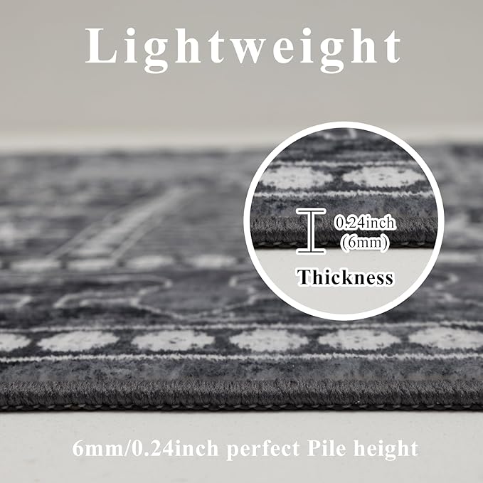 4x6 Washable Area Rug for Living Room, Carpet for Bedroom, Soft Faux Wool Retro Dining Room Rug, Non Slip&Non-Shedding Resistant Low Pile Vintage Print Rug for Home Office (Grey)