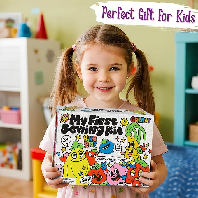 - My First Sewing Kit for Kids: This fruit sewing kit for kids includes 7 pre-cut fruit projects made of premium felt and soft faux leather with self-adhesive stickers for arms, legs, eyes, and more accessories. Plus 6 plastic needles, 1 detailted manual, and 8 colors of embroidery thread, all packaged in a exquisite box. We offer everything you need for beginners to start right away and enjoy success