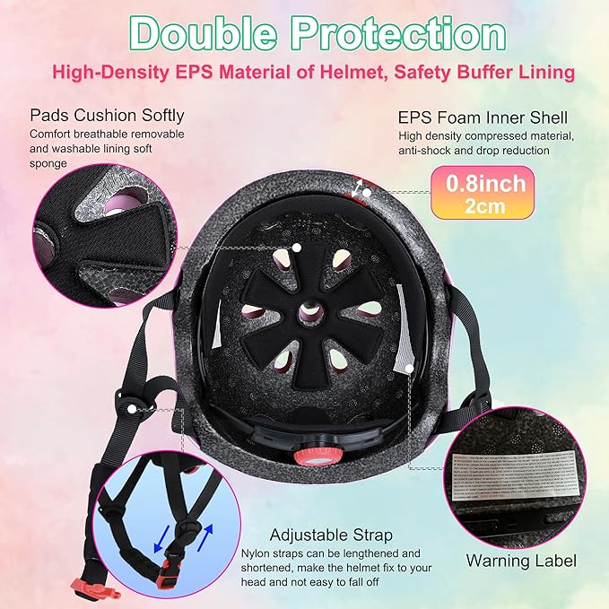 - 【Perfect Gift Choice for Kids】 Our boys girls helmet is lightweight (only 12.3oz), and kids have no burden wearing our bike helmet. The toddler bike helmet provides protection for many outdoor activities, such as bicycling, roller skating, skateboarding, scooter, street dancing, pedaling, etc. It is a good choice as a gift for Children's Day, Christmas, Halloween, Thanksgiving, Birthday and other holidays.