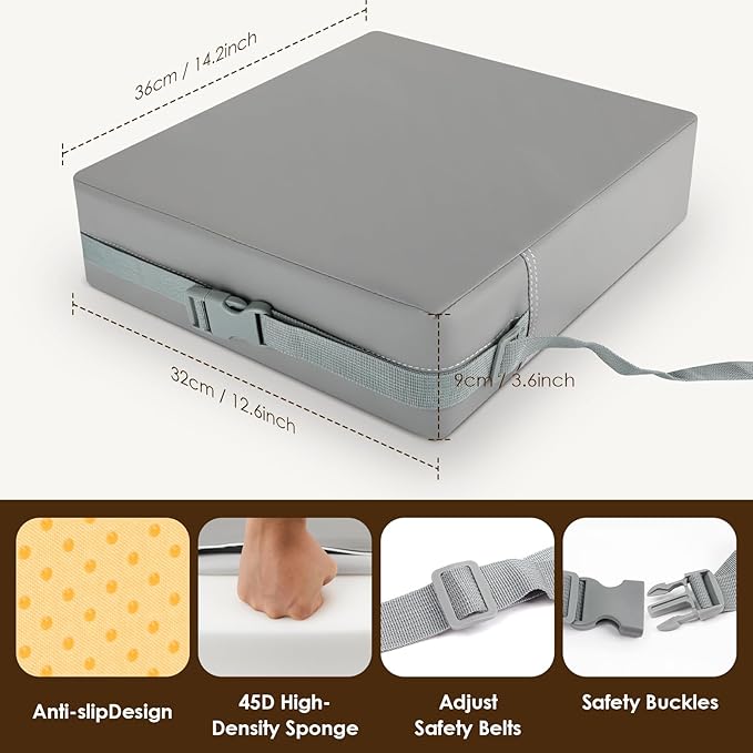 - 🎒【Portable, Versatile & Great for Floor Use Too】:Lightweight and easy to carry, this table booster seat doubles as a floor cushion for reading, playing games, or watching TV. The kitchen booster seats for toddlers 2-5 design makes it a go-to for home, outings, or restaurants. Please allow 24 hours after unpacking for full expansion.