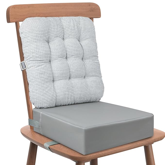 - 🪑【Upgrade 2-in-1 Toddler Booster Seat for Kitchen Chair & Dining Table】:This toddler booster seat includes a seat cushion + backrest set designed for most kitchen chairs and dining room chairs. Compared to other single booster seats, our kitchen chair booster seat adds a Separable backrest cushion, helping them maintain proper sitting posture.Whether it's breakfast, lunch, or dinner time, this dining chair booster seat toddler offers the ideal elevation and support for children aged 2-12 years.