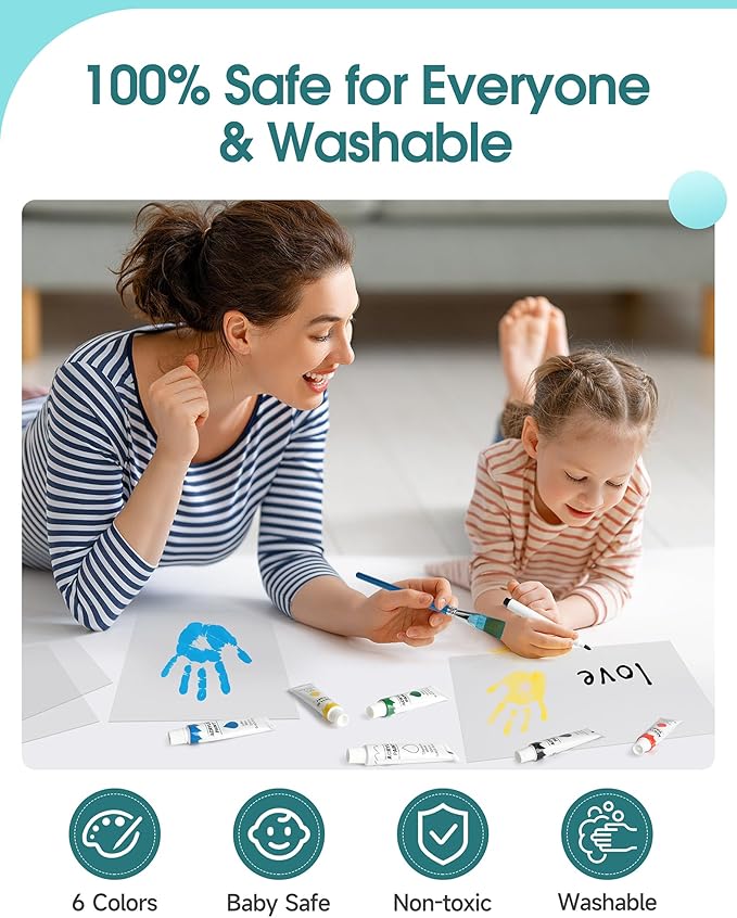 - Baby-Safe Handprint Kit with 6 Vivid Colors! Crafted from sturdy, quality wood. Features Certified Baby-Safe Paint: Rigorously tested, non-toxic & acid-free for infant safety. Washes off skin & surfaces easily - no residue! Includes 6 popular vibrant paints: Red, Yellow, Blue, Green, White, Black. Create colorful, lasting family treasures safely
