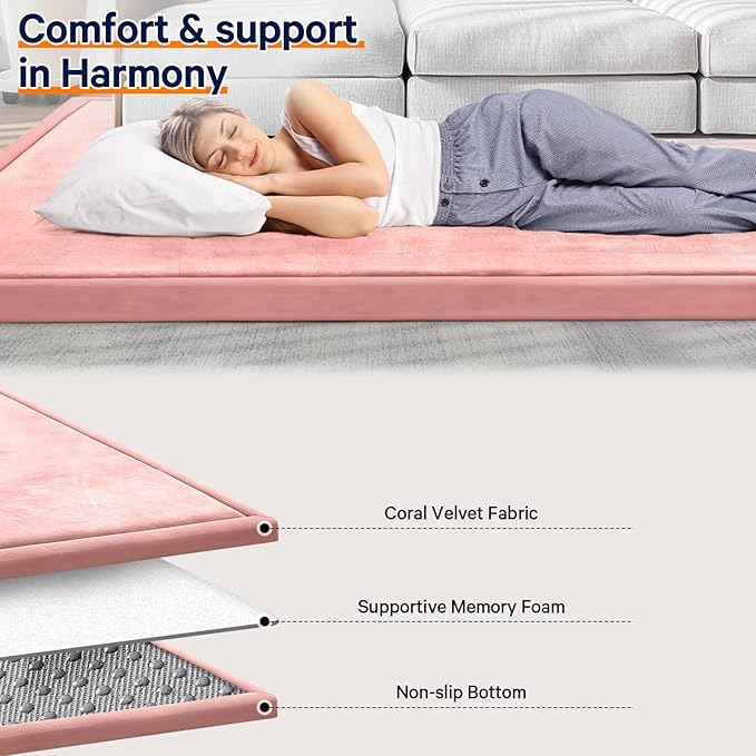 - 🐣SAFE & COMFY: Our baby play mat is made of 100% coral velvet material and filled with high-quality 3.5cm thick memory foam,eco-friendly and durable, providing a safe and comfortable play area for your babies, without worrying about them hurting themselves on hard floors.The surface of this tummy time mat is velvet cover, which is not only soft and comfortable to touch, but also has a good cushioning effect.