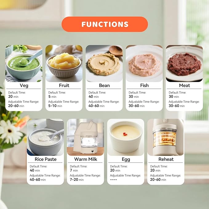 - 【TAILORED FOR BABY GROWTH】 – Three age settings (4–6M, 6–9M, 9M+) help you adjust food texture for each developmental stage, supporting healthy eating habits.