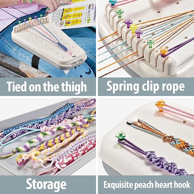 - Innovative Design, Easy to Make:It is designed with a unique feature that is easy to tie around the thigh and equipped with Velcro straps, so you are not limited to the desktop when making. It is more convenient to tie it around the thigh and ensure that it will not fall off. 12 built-in spring slots can separate and organize the wires for easy making. Step-by-step instructions for different bracelet styles help children easily master them.