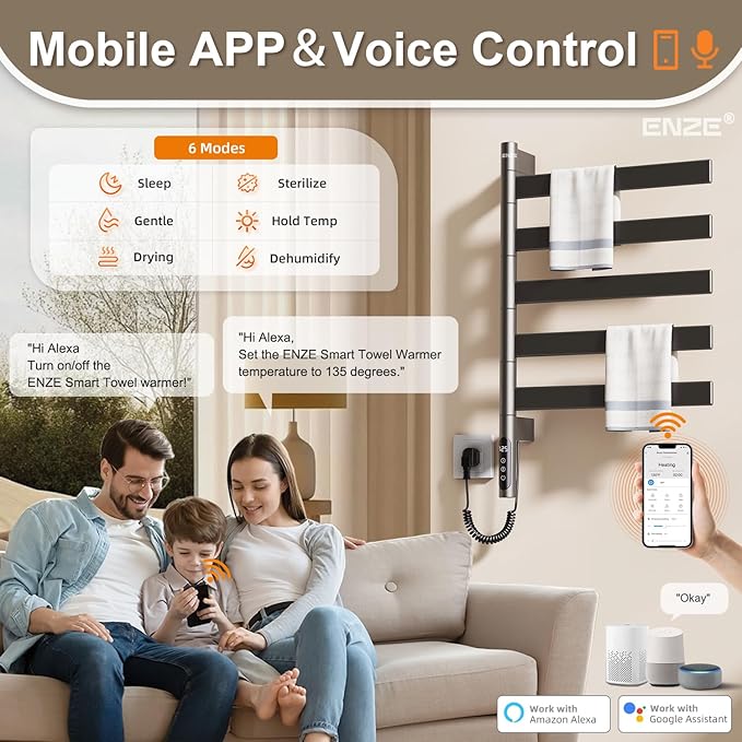 • 【Smart WiFi Towel Warmer with Voice Control】 Control your electric towel warmer anytime via the WiFi towel warmer function through Tuya app, Alexa, or Google Assistant. Experience hands-free convenience with this smart towel warmer designed for modern living.