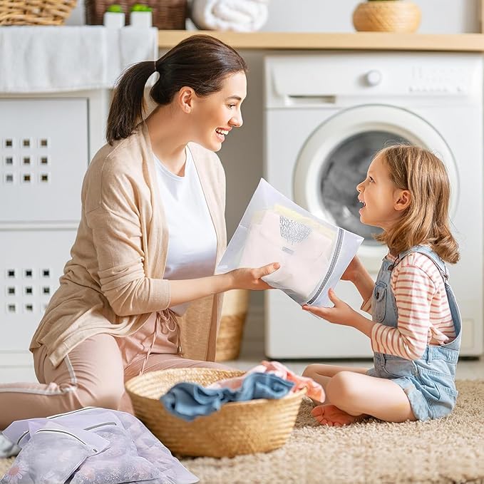 - Multi-Size Mesh Laundry Bags Set: Lncludes four laundry bag in practical sizes to fit a variety of items: 9.8 × 11.8 inches for underwear and socks, 11.8 × 15.7 inches for t-shirts, shirt, and baby clothes, 15.7 × 19.6 inches for sweaters and pants, and 23.6 × 35.4 inches for large items like down jackets.