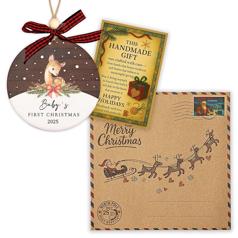 - π Perfect Gift for Baby Girls and Boys Whether you're welcoming a baby boy or girl, this Baby's 1st Christmas Ornament makes a thoughtful and meaningful gift. It comes with a printed card featuring a sweet holiday message, ready to give as a New Baby Ornament for Girls Boys. Great for baby showers, holiday gift exchanges, or as a sentimental gesture from grandparents, aunts, or uncles.