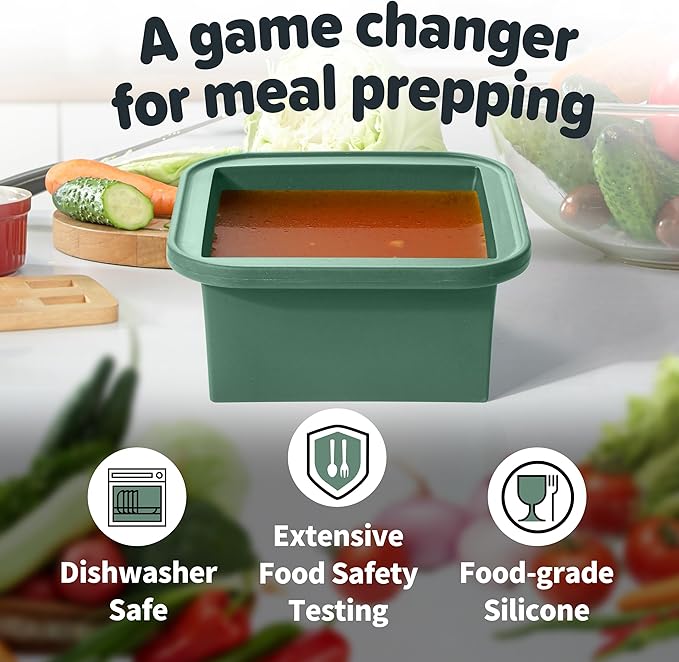 - VERSATILE & CONVENIENT FOR ANY KITCHEN TASK Use them for: Freezing homemade soups, sauces, and broths Storing baby food and portioning snacks Baking (up to 415°F without the lid) Making ice cubes, chocolates, and more! Dishwasher-safe for quick and easy cleaning, they save you time in the kitchen.