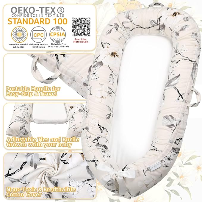• ✅ Lightweight & Travel-Friendly – Compact and portable with convenient carry handles, this baby nest is easy to take with you wherever you go—great for around the house or weekend visits to family.