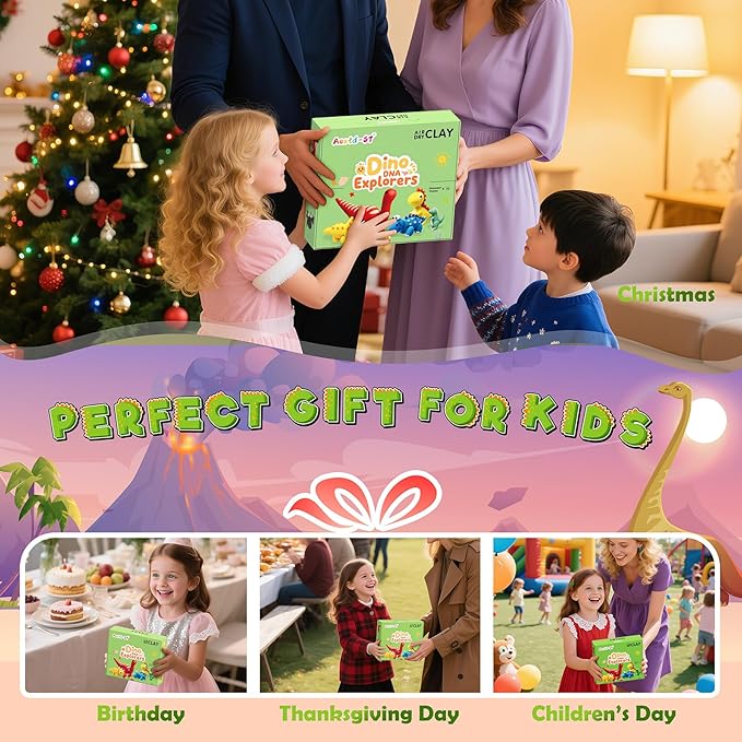 - Creative Fun & Kids Gift: This air dry clay kit features vibrant, kid-friendly packaging with playful dinosaur designs—Suitable for boys, girls, and teens. A thoughtful present blending artistic crafting, education, and family fun at birthdays, Christmas, parties, and seasonal celebrations!