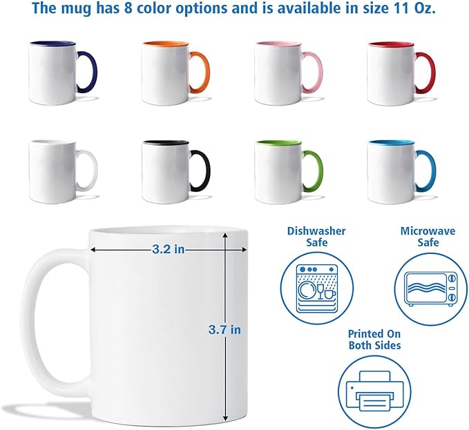 - EXCELLENT QUALITY: Made from 100% durable, glossy white ceramic. Safe for both hot and cold beverages. The design is printed on both sides using high-quality sublimation printing for long-lasting durability—won’t scratch, peel, or fade. Microwave and dishwasher safe.