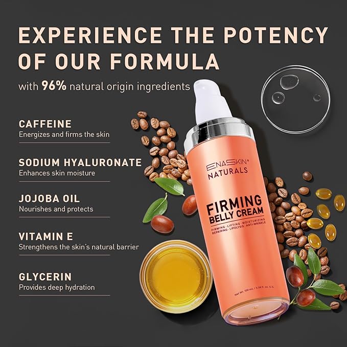 - NOURISH AND ENERGIZE YOUR SKIN: Infused with skin-loving ingredients, our Belly Firming Cream combines the warming power of Vanillyl Butyl Ether to gently stimulate and revitalize, Vitamin E to protect with antioxidants, Jojoba Oil to moisturize and soften, and Sodium Hyaluronate to deeply hydrate and plump the skin.
