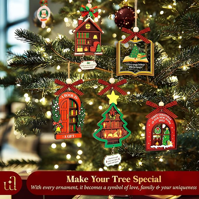 - Book Ornaments Christmas 2025 – Door 2025 (door shape): Celebrate reading season with charming book ornaments for christmas tree that double as a reader ornament and stylish book lovers ornaments for christmas tree. Perfect for shelves and nooks as christmas decor for bookshelf, and a cozy accent in your home library with book decor, book themed decor, and book lovers decor.